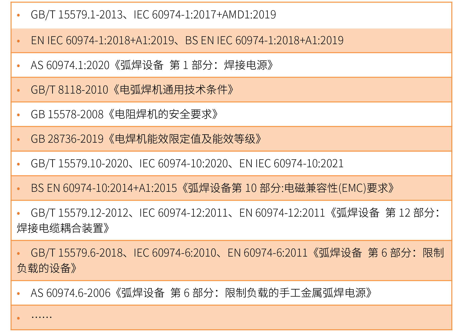 电焊机强制性自我声明电焊机服务背景电弧焊机(直流弧焊机、TIG弧焊机、MIG/MAG弧焊机、等离子切割机)产品必须取得CCC强制性自我声明才能在国内生产和销售。随着自主品牌技术实力和产品质量的日益提高,我国焊机不断向上探索,未来在欧美两大市场中终将占有重要地位。 电焊机试验是指在10-40℃的环境温度下,对新的、干燥的、安装完整的焊接电源进行试验。主要考核电焊机在额定焊接输出对应的额定暂载率下,能否满足实际焊接的要求。同时考核电焊机在一定的噪声和湿热环境下,是否会对操作者的安全产生威胁。